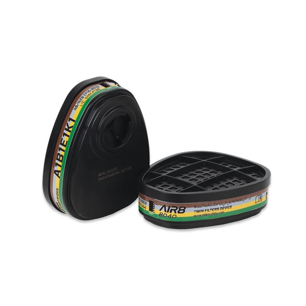 Gives Class 1 protection against multiple gas/vapour hazards: A = gases and vapours from organic compounds (boiling point >65°C) B = inorganic gases and vapours, eg. chlorine, hydrogen sulphide E = acid gases and vapours, eg. sulphur dioxide K = ammonia and organic ammonia derivatives