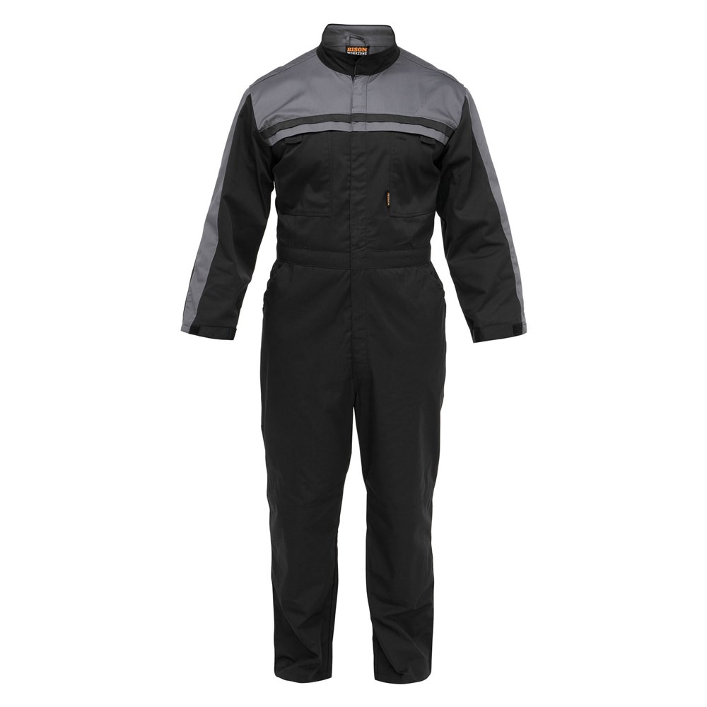 Bison Euro 240gsm Polycotton Zip Overall - Black/Grey
