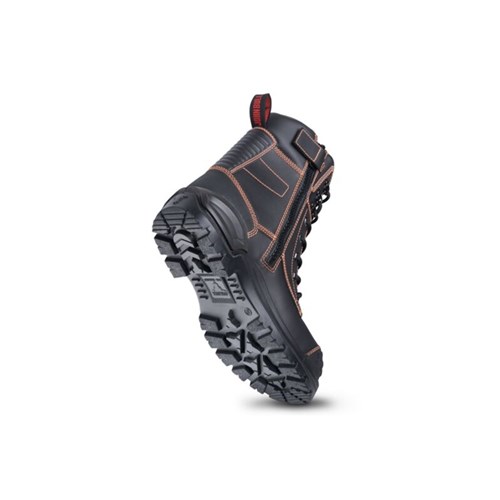 Nitrile Rubber outsole with aggressive self-clearing tread pattern providing superior grip, stability and abrasion resistance. A rubber outsole increases cut and slip resistance and is resistant to hydrolysis and microbial attack
